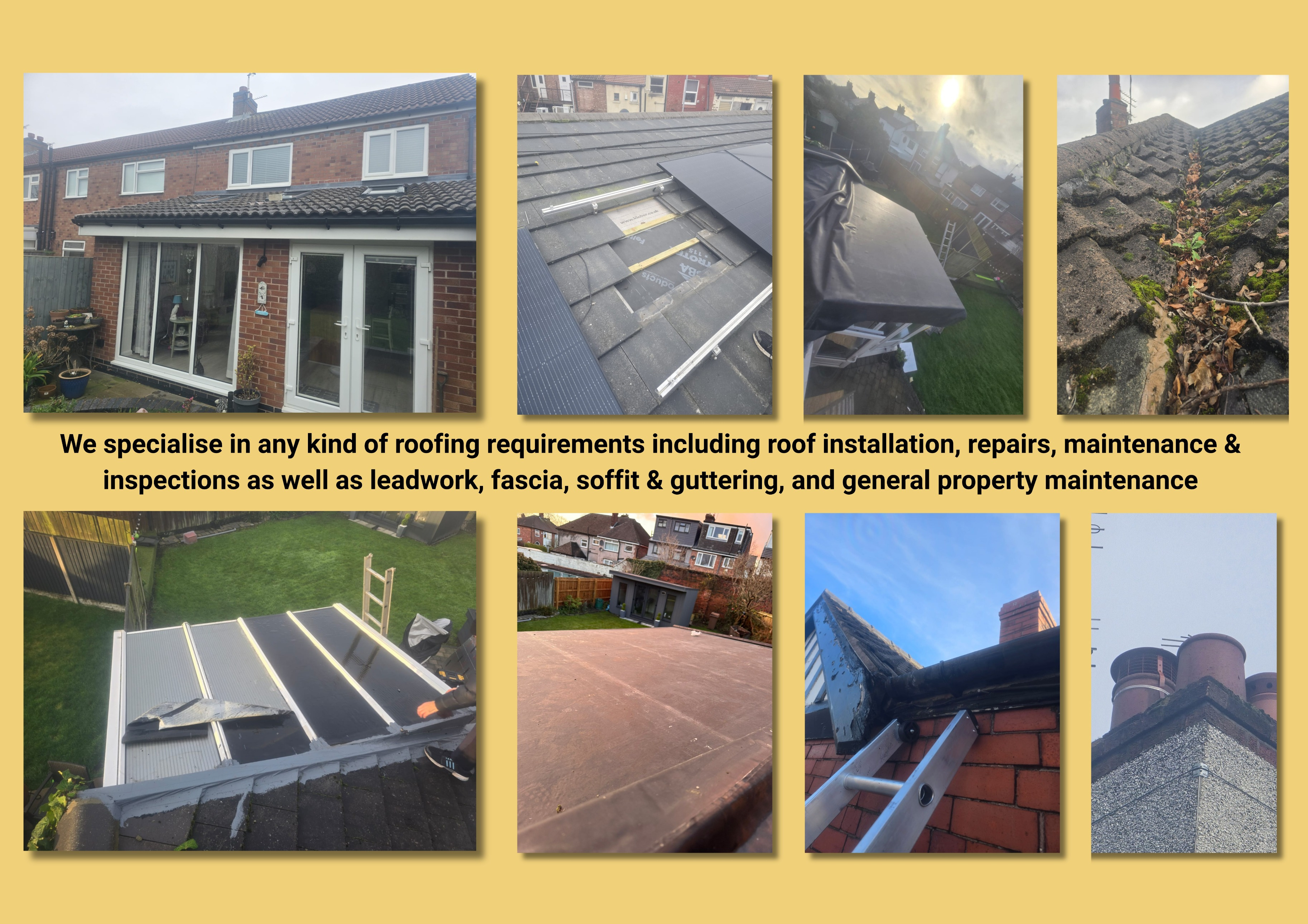 We specialise in any kind of roofing requirements including roof installation, repairs, maintenance & inspections as well as leadwork, fascia, soffit & guttering, and general property maintenance where we have a range of preferred trades we have worked with over the years so are assured of their quality, reliability and competitiveness.
